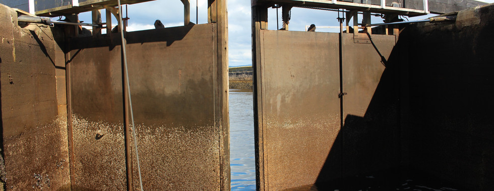 Once we got there we tied to a pontoon just outside the main sea-lock, but before long we were ushered in - being in the lock is creepy - huge gates open and then close behind you as you enter - Once the gates are shut - they flood it with water and raise you up about 10 ft - It's pretty crazy!