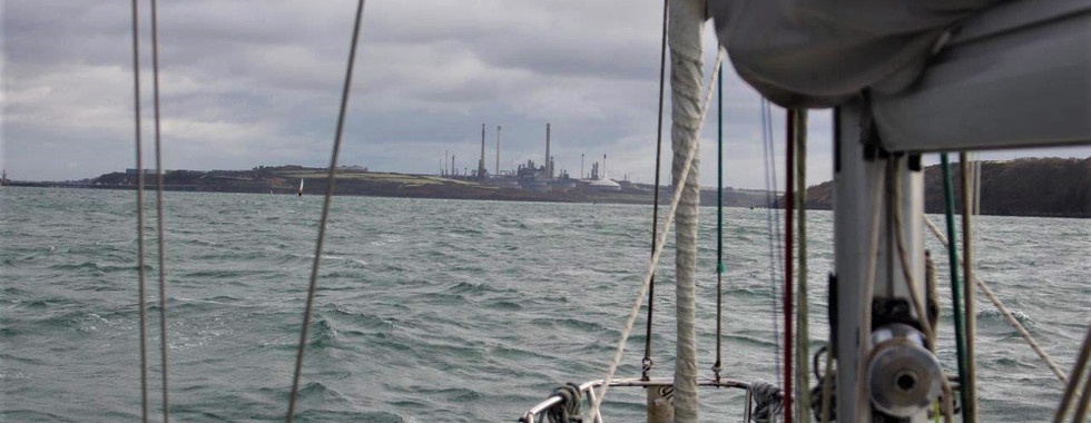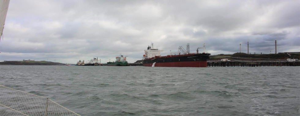 Milford Haven sounds like a lagoon with quaint anchorages, it is, in fact, a haven for huge cargo ships and tankers, the landscape is littered with a mix of modern industrial structures and very old ones...and it didn't even take 30 minutes to get all the way to the entrance of the marina...