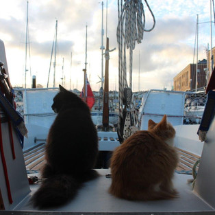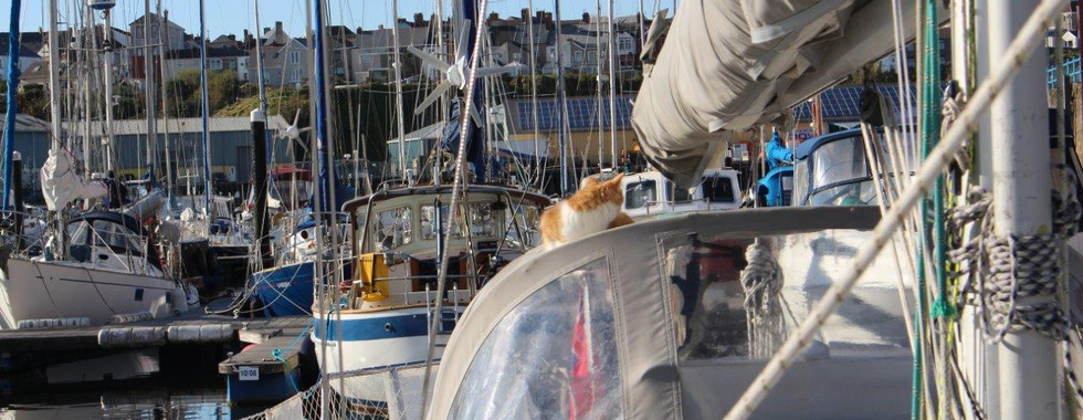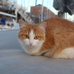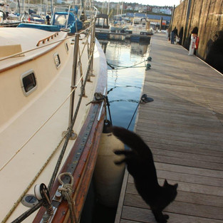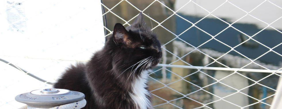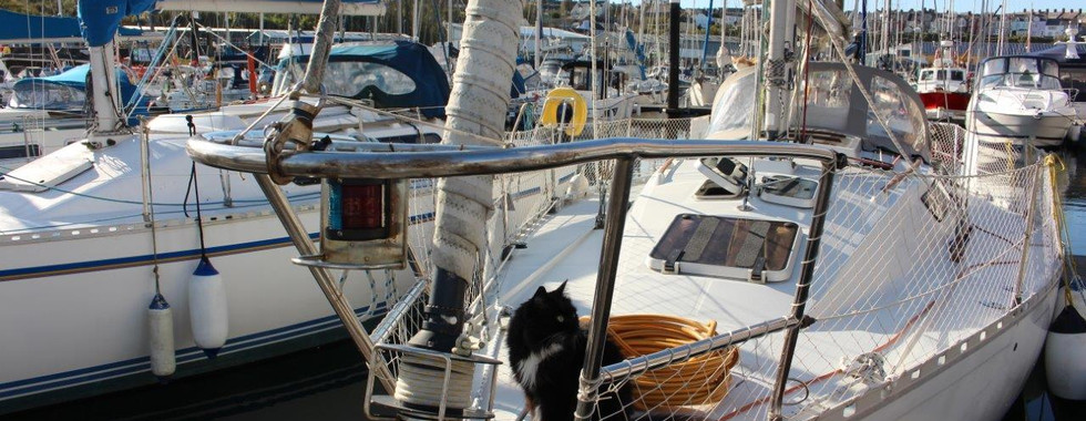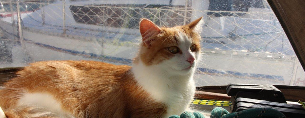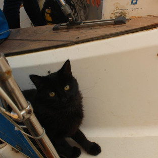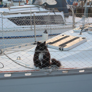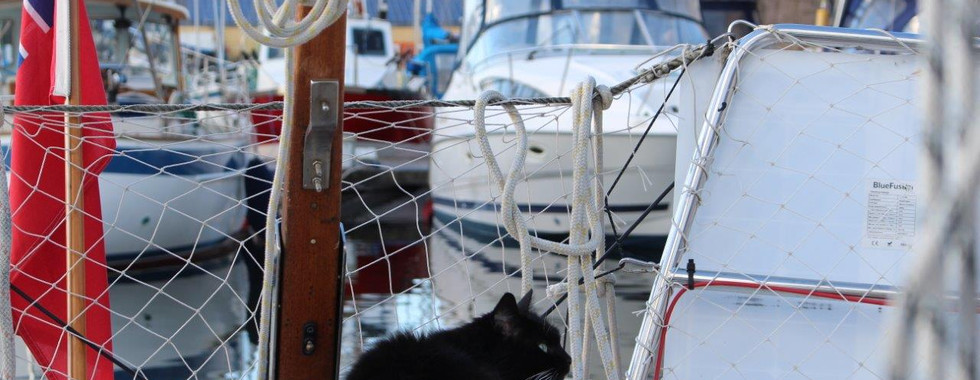 Barry is just a young cat but has already mastered getting on and off yachts, I saw this cheeky little chap all over the marina - on different boats, sneaking in under the spray hoods, you would just see a tail disappearing on some anonymous yacht...