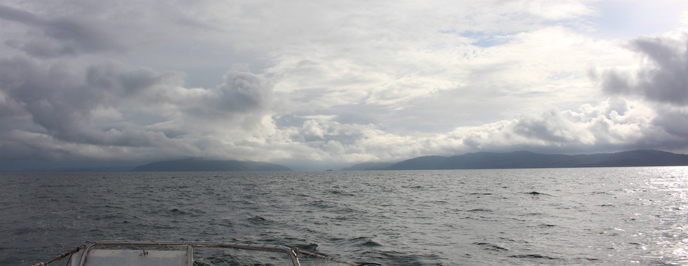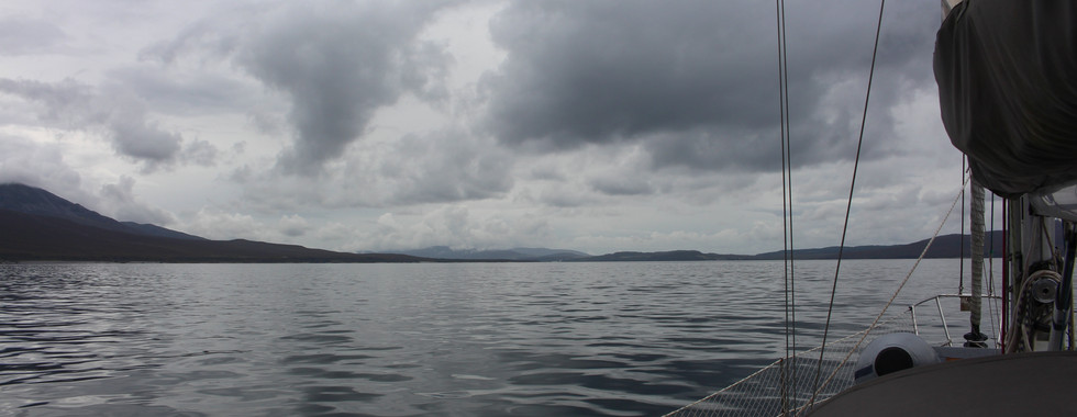 We continued down the coast of Jura then it just rained on and off, but it wasn't too bad, where I sit, under the dodger in front of all the instruments its quite protected, in fact, I think it's the only bit of canvas on this boat that isn't starting to fall apart.