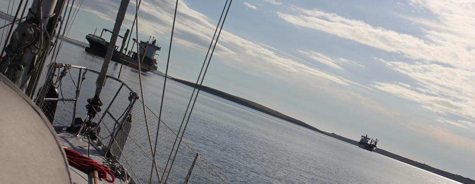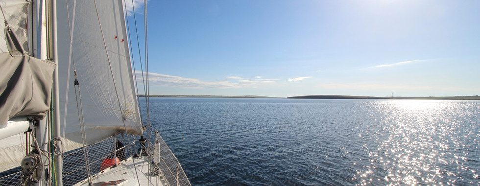 We left Sinclairs Bay early in the early afternoon to time our crossing so as to miss the worst of the currents and to use the tide to our benefit. Crossing at the wrong time can be very dangerous even for larger boats – the Orkney Islands are littered with wrecks – and we did our best not to become one of them.