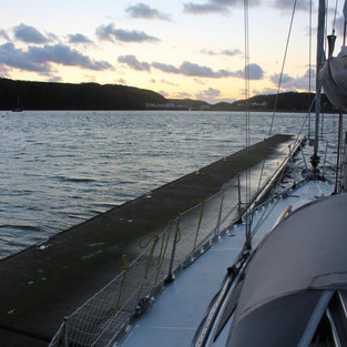 We had planned to stay until Sunday but left on a Friday morning and the weather wasn't right for doing our super jump, but off we go further down the coast. We had learned of a pontoon to the South of us that we hope will be a refuge for a day or so, but some new situations would change our other plans...but we would start our trip with a rainbow...just a single rainbow - but a rainbow nonetheless...