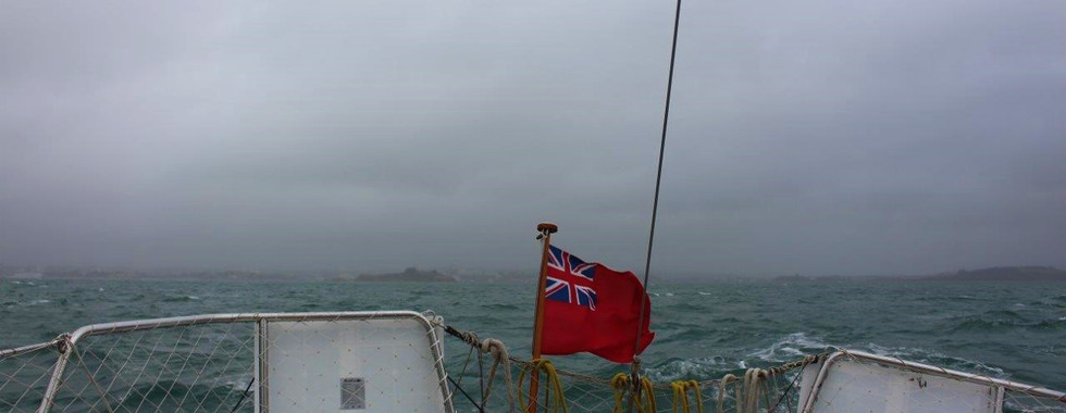 The next day, the tanks were topped off, the crew were fed, dues were paid, and we're outta here. The weather couldn't make up its mind on whether it was going to be a nice day or an awful day - either way, we were leaving, and somewhere between the marina and the bay, it decided it was going to be awful for a while...