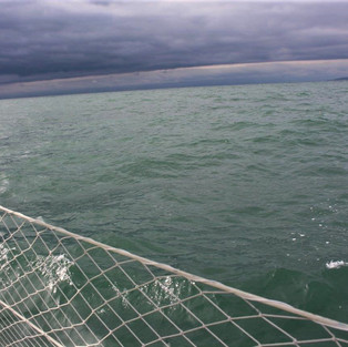 We were about halfway across the bay when the light started to fade, we were definitely going to be night sailing. damn. About two minutes after this realization I saw a damn fishing buoy, then another - saw about ten of them - all poorly marked with 10ft long pickup lines and with the current coming from the west it was dragging these lines perpendicular to our vessel - like a prop shaft booby-trap - these lines would go right under and make a mess of our prop - this just won't do.